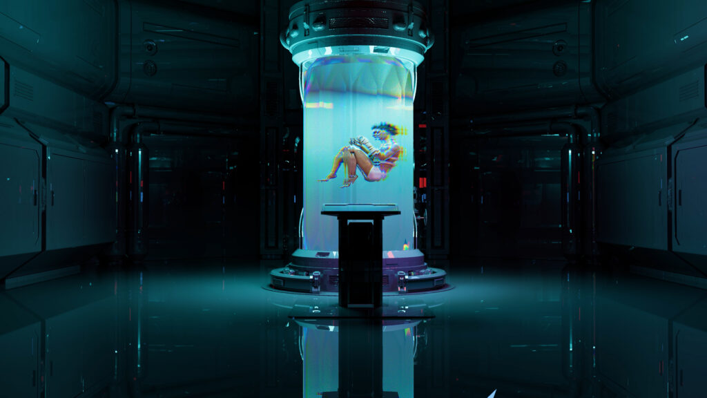 As these avatars continue to split, merge, and disintegrate, the film begins to fold in on itself. Environments blur into bodies, bodies melt into signals, and language spills into noise. What feels at first like fragmentation becomes a kind of quiet hum, an exhausted unity formed from everything that can’t be sustained.